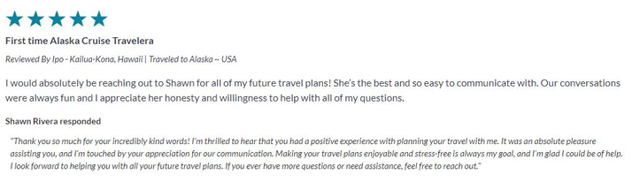 Your journey starts with a conversation, not a transaction. I'm with you from the moment we discuss your dream trip until you're unpacking your bags back home. I care about your travel, your experience, and your safety